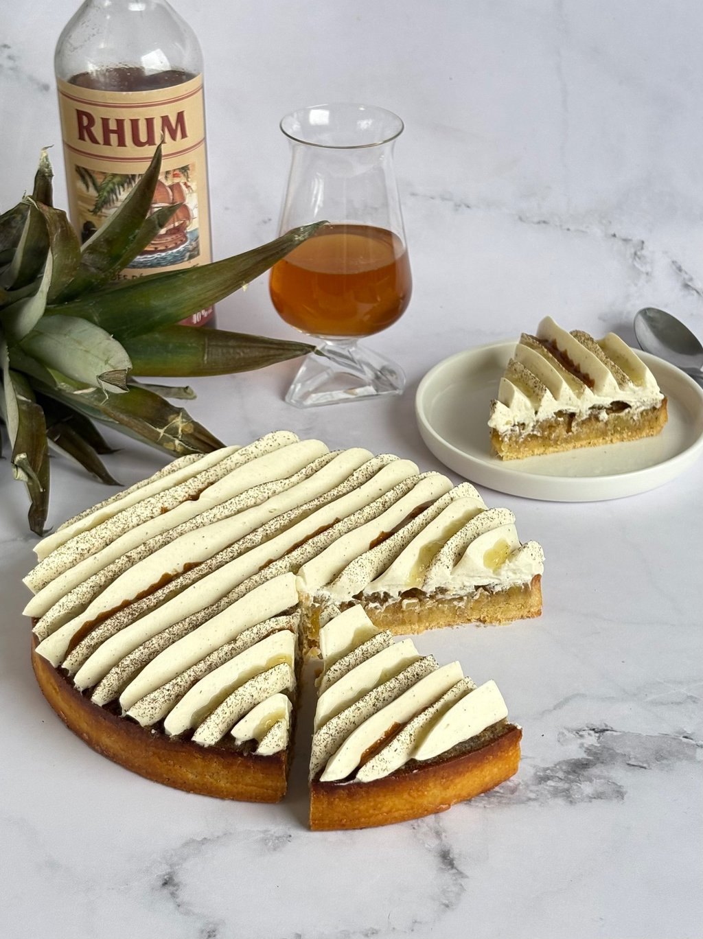 Une création harmonieuse où se rencontrent la douceur de la vanille, la chaleur du rhum et la vivacité du citron.