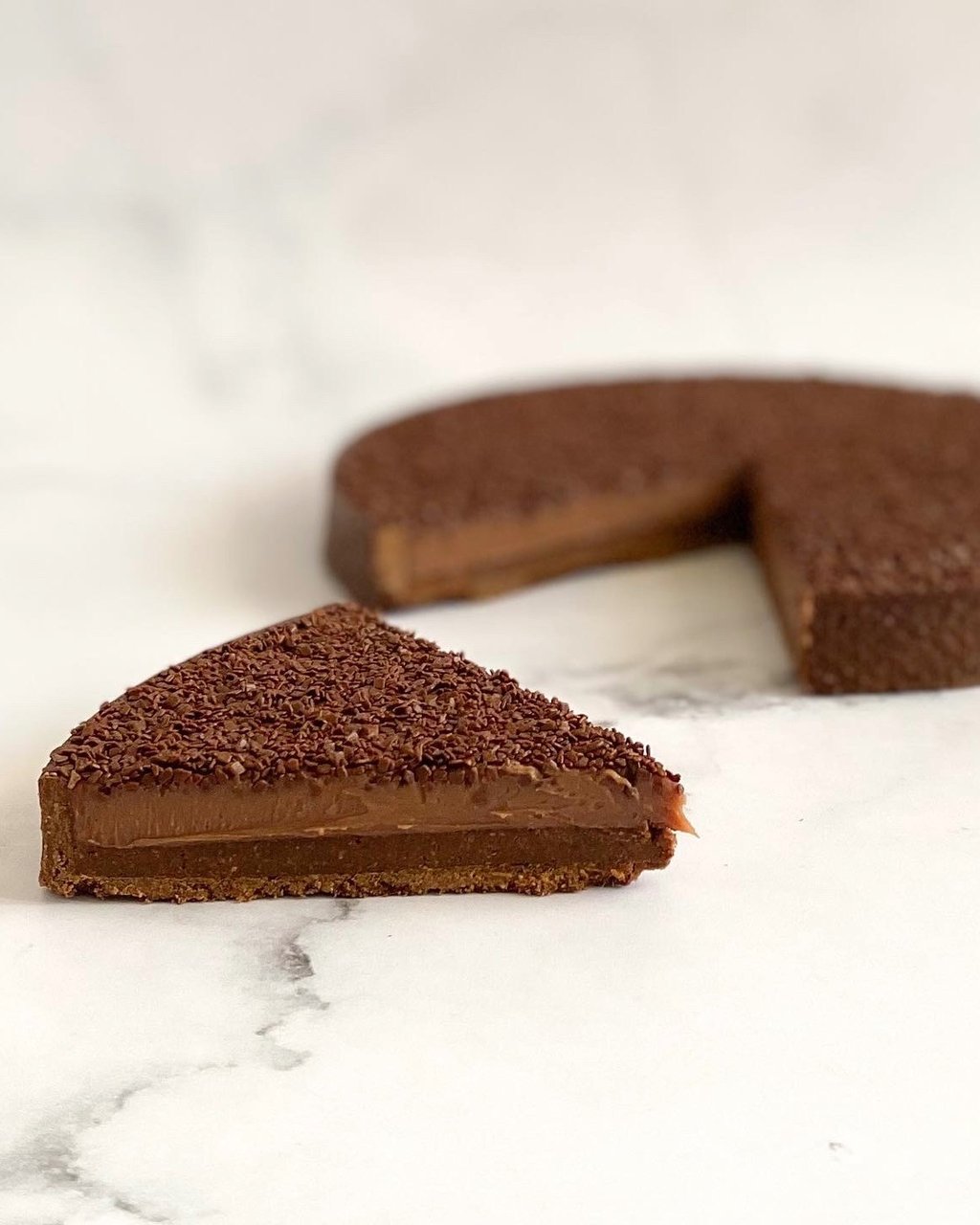 Une tarte terriblement addictive, composée d’une pâte sucrée croustillante au cacao, d’un praliné au grué de cacao et d’une ganache fondante au chocolat au lait. D’une gourmandise sans nom, elle fait partie de mes plus belles créations.