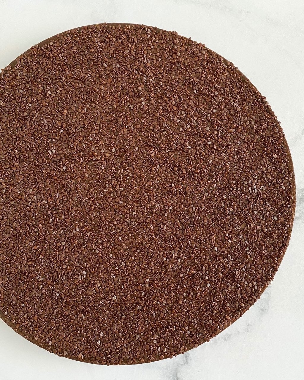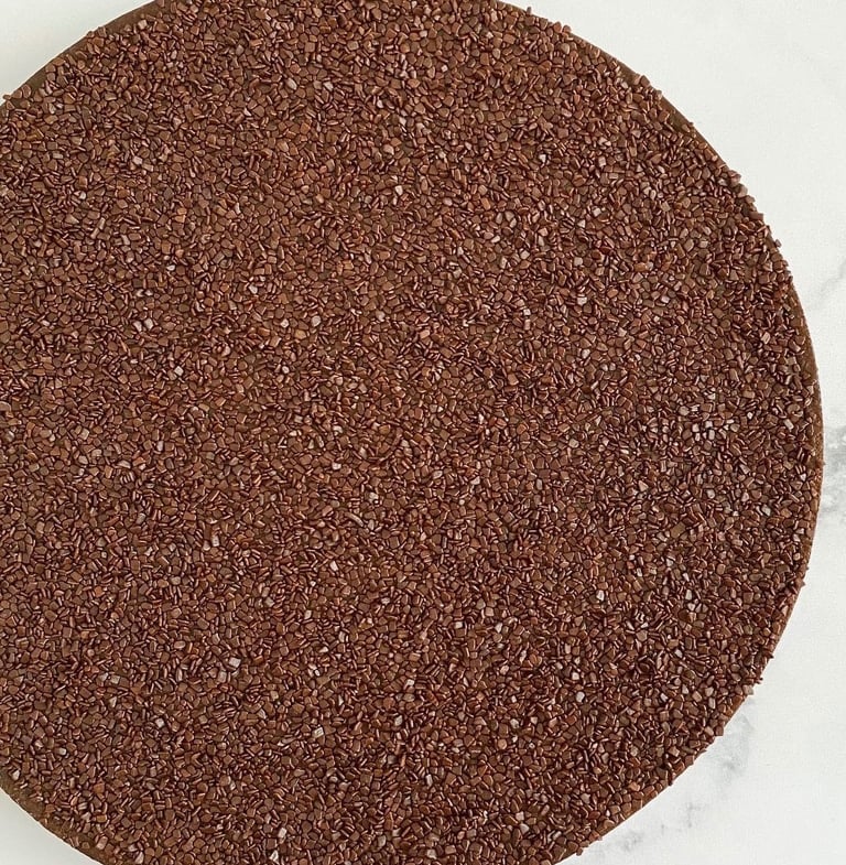 Parsemez uniformément des paillettes en chocolat sur la ganache. Placez votre tarte 2h au réfrigérateur, ou mieux, toute une nuit à température ambiante avant de déguster.