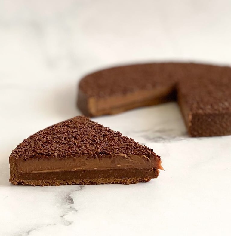 Je recommande de préparer cette tarte la veille, afin de laisser la ganache cristalliser à température ambiante pendant la nuit. Il est toutefois possible de la réaliser le jour même : dans ce cas, laissez-la reposer quelques heures au réfrigérateur jusqu’à ce que la ganache soit parfaitement prise.