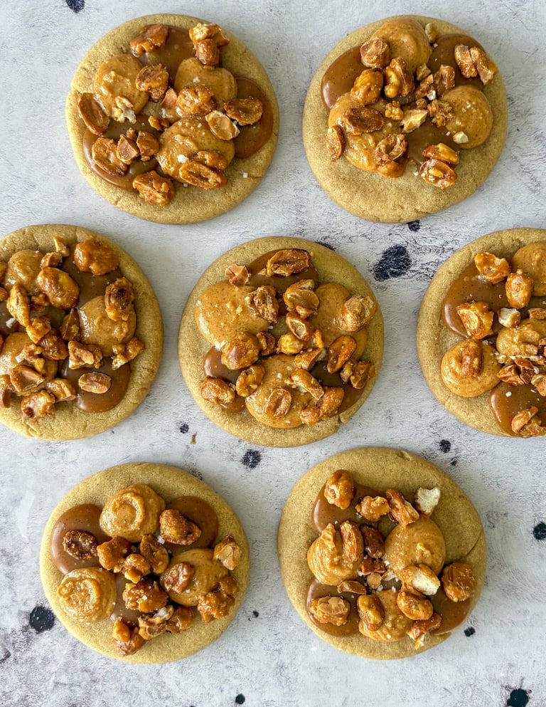 Les cookies à la cacahuète de Cédric Grolet, que dire ? Moelleux à cœur et légèrement croustillant sur les bords, renfermant plusieurs cœurs de praliné à la cacahuète et a la fleur de sel et garnies de caramel beurre salé onctueux à la vanille se mêlant au praliné cacahuète à la fleur de sel, parsemés de cacahuètes caramélisées pour un croquant irrésistible et une touche torréfiée ultra réconfortante. C’est une véritable petite bombe de gourmandise, fondante, croustillante, addictive...