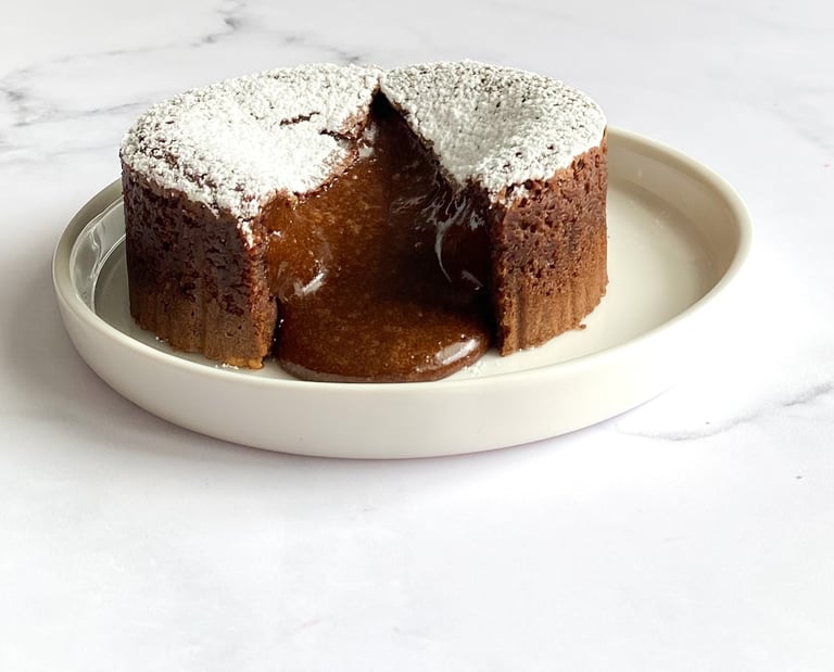Pour moi, un véritable moelleux doit toujours cacher un cœur coulant, tandis que le fondant, lui, se distingue par une cuisson légèrement écourtée qui lui donne une texture crémeuse et fondante en bouche, mais sans coulée. Le terme "fondant" fait donc référence à la sensation en bouche, et non au chocolat fondu en lui-même.
