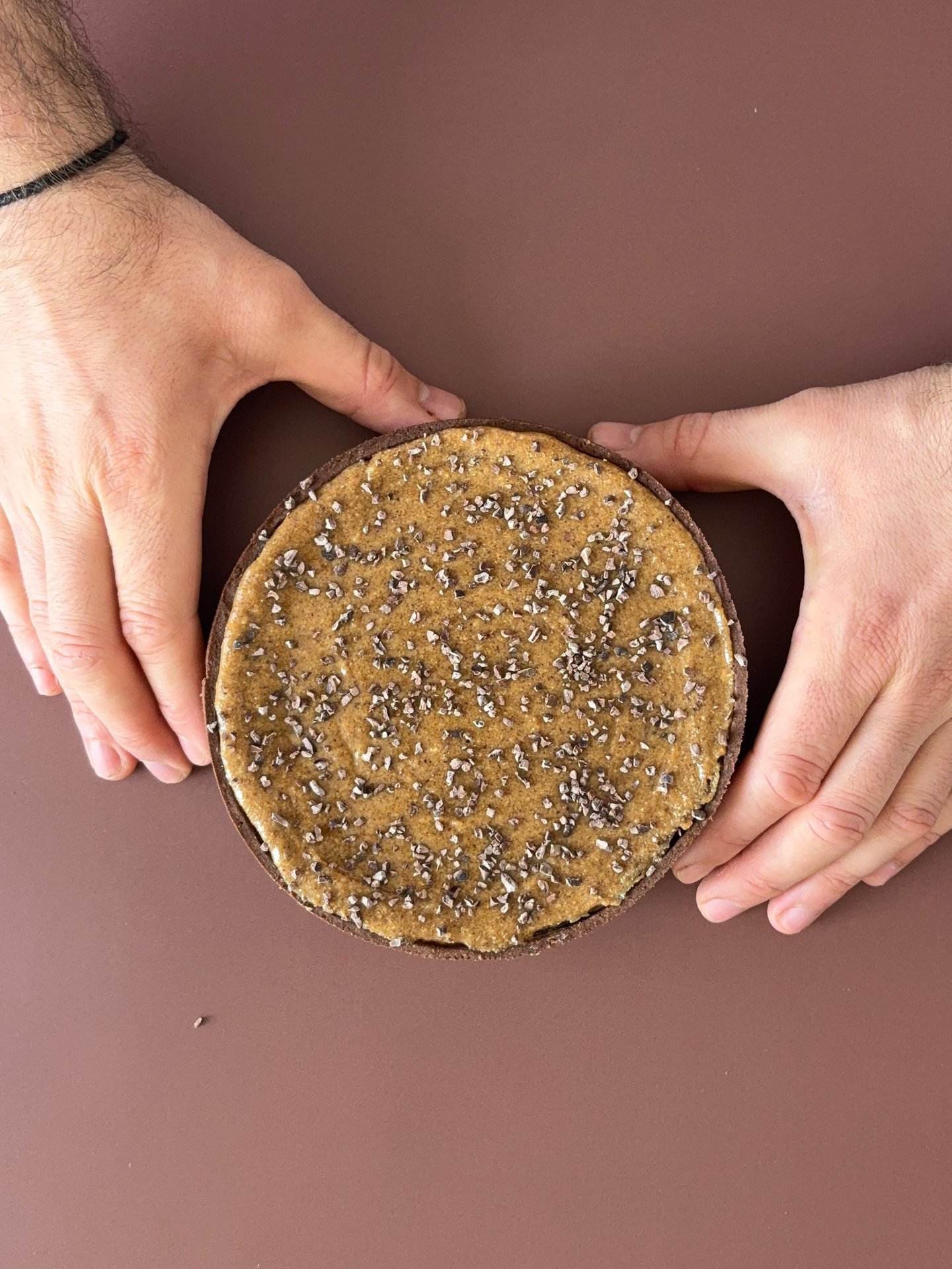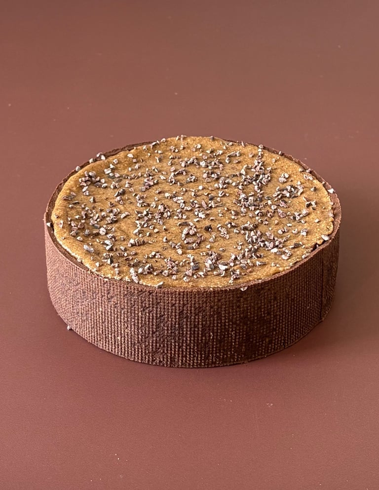Un flan ultra généreux mêlant 2 saveurs gourmandes pour encore plus de plaisir. Sur une base croustillante de pâte sucrée cacao, on retrouve donc une crème au praliné pur noisette et une crème au chocolat noir 66% origine Mexique de chez Cacao Barry. Pour couronner le tout, un praliné dégoulinant à la fleur de sel et quelques éclats de grué de cacao pour rappeler un peu d'amertume du chocolat noir.