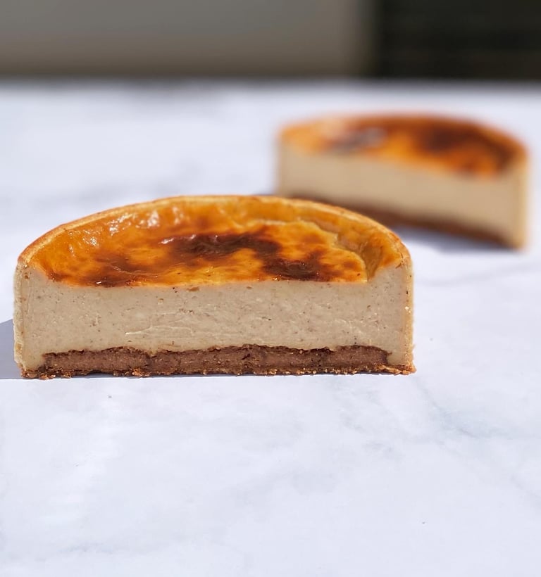 Ce flan se distingue par un insert de praliné noisette pur au cœur, qui apporte richesse, croquant et intensité en bouche, créant un délicieux contraste avec la douceur soyeuse du flan. Chaque bouchée est un équilibre parfait entre fondant, gourmandise et caractère du praliné, pour un dessert irrésistible et raffiné.