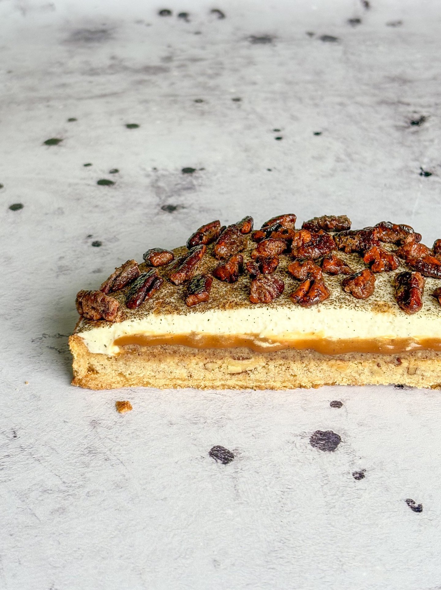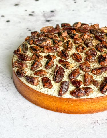 Pochez votre crème de pécan sur un peu moins de 1 cm d'épaisseur et ajoutez les noix de pécan concassées.