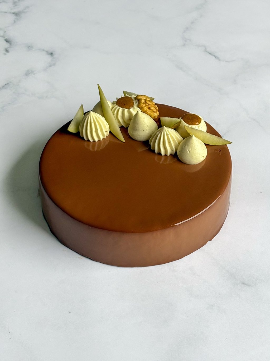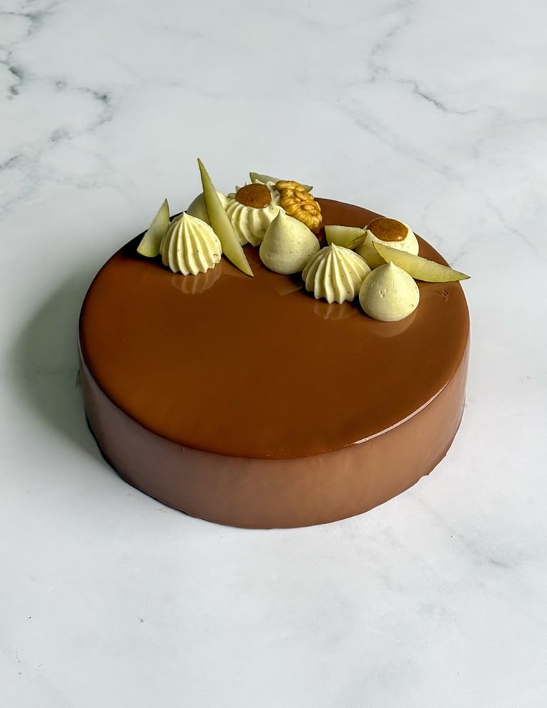 Enfin, un glaçage miroir brillant vient sublimer le dessert, offrant une finition élégante et contemporaine.