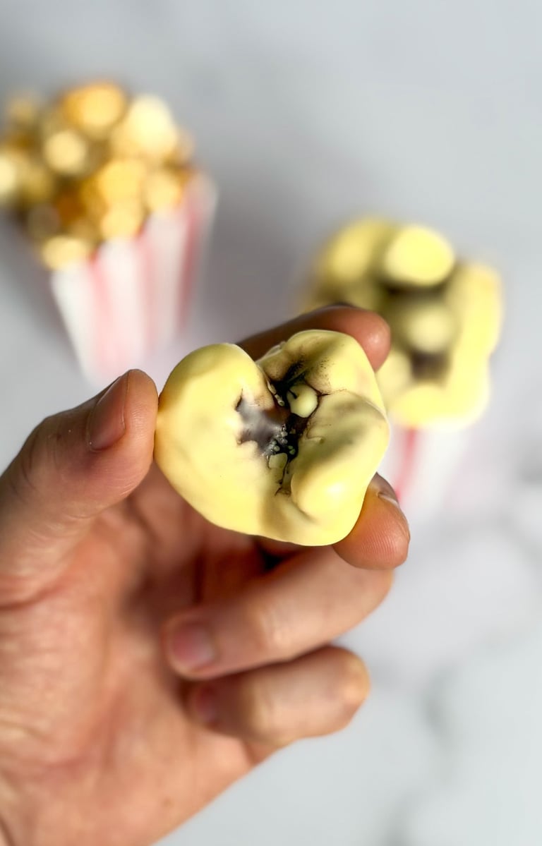Dans la famille des trompe-l'oeil, j'ai nommé le Pop-Corn. On est bien d'accord qu'un Pop-Corn ne fera jamais cette taille, mais comme le pape Cédric Grolet appelle-ça un trompe-l'oeil, loin de moi l'idée de le fâcher.