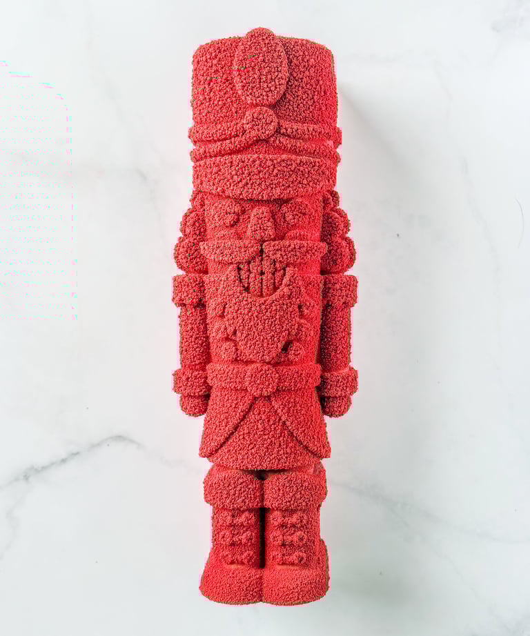 Il ne vous restera plus qu'à démouler, floquer en rouge et laisser votre bûche décongeler au réfrigérateur pendant 5 à 6h.