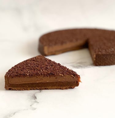 Je recommande de préparer cette tarte la veille, afin de laisser la ganache cristalliser à température ambiante pendant la nuit. Il est toutefois possible de la réaliser le jour même : dans ce cas, laissez-la reposer quelques heures au réfrigérateur jusqu’à ce que la ganache soit parfaitement prise.