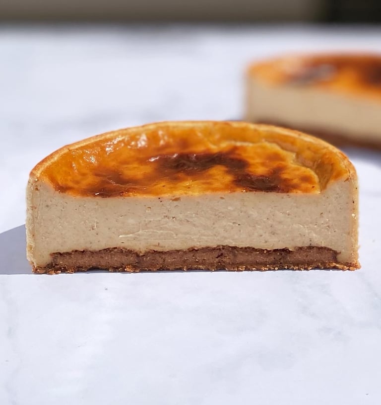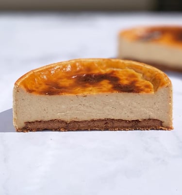 Ce flan se distingue par un insert de praliné noisette pur au cœur, qui apporte richesse, croquant et intensité en bouche, créant un délicieux contraste avec la douceur soyeuse du flan. Chaque bouchée est un équilibre parfait entre fondant, gourmandise et caractère du praliné, pour un dessert irrésistible et raffiné.